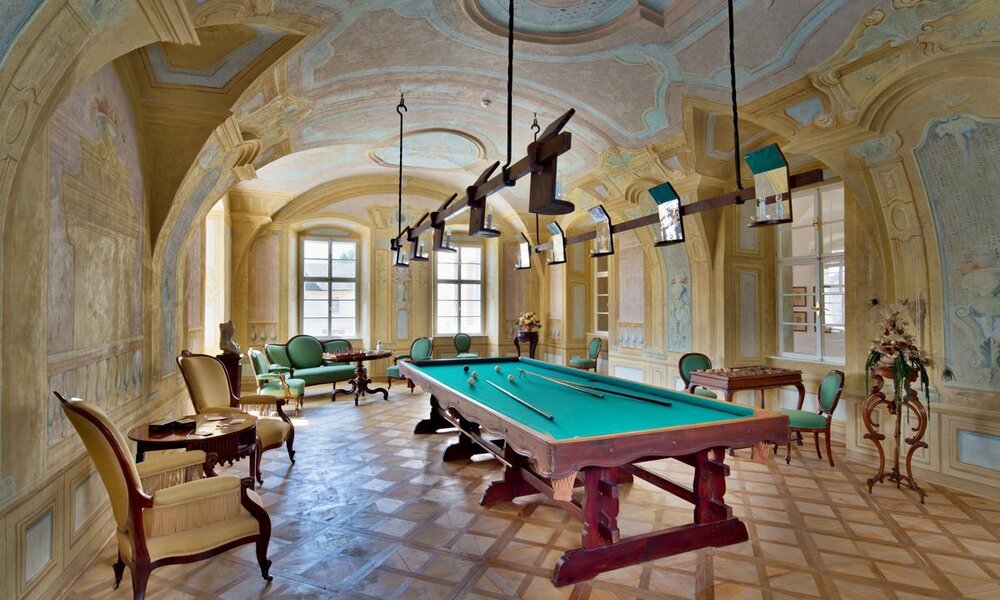 Září (všední dny): 11:30, 16:00. Září (víkendy): 11:00, 14:00, 16:00. Prohlídková trasa zahrnuje Biliárové křídlo zámku, kde navštívíte biliárový sál, pokoje nejvyššího služebnictva, byt Giacoma Casanovy a knihovnu.